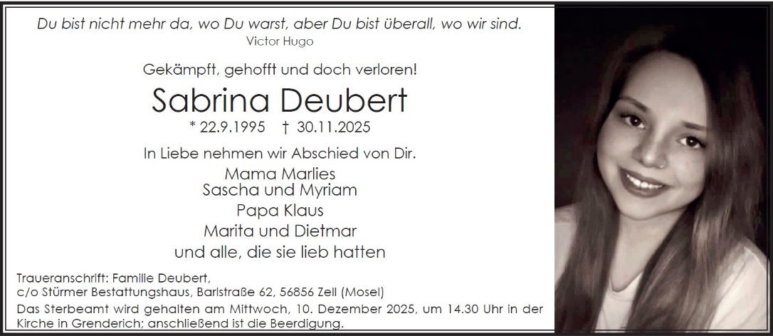 wir wünschen Ihnen von Herzen viel Kraft, dass Sie Menschen um sich haben, die Ihnen in dieser schweren Zeit beistehen und Halt geben. Zusätzlich können Sie auf dieser Gedenkseite Erinnerungen teilen und so das Andenken gemeinsam wachhalten.